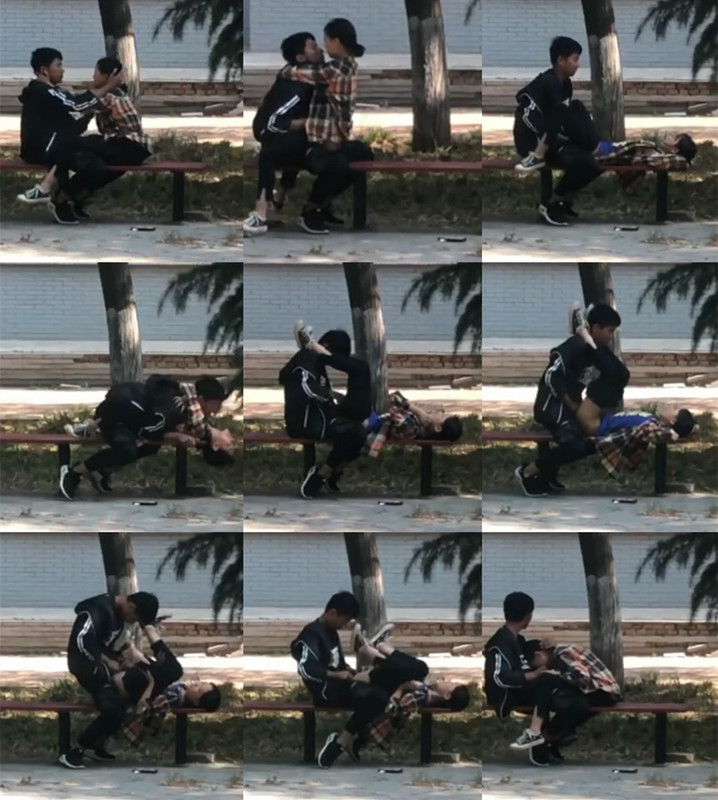 大學生宿舍大院情侶啪啪被幾個躲在宿舍的同學圍觀流出